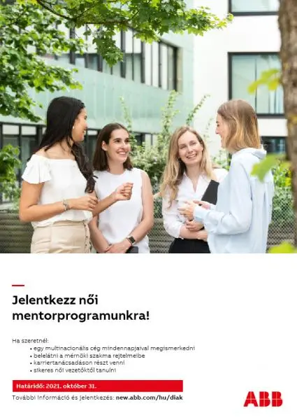- A pályázatokat a következő linken keresztül történő jelentkezés formájában várjuk: https://careers.abb/global/en/job/79902505/ABB-N%C5%91i-mentorprogram