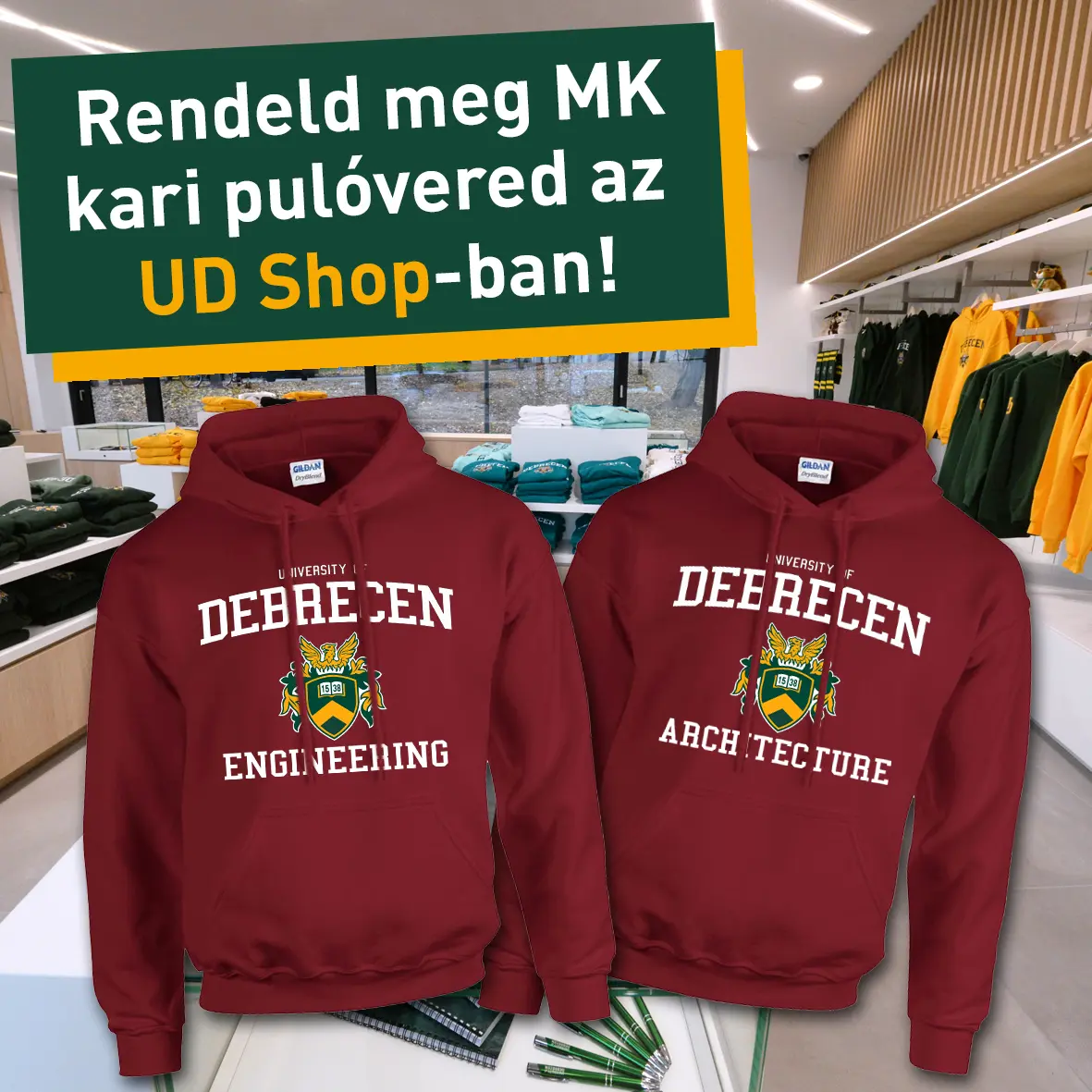 A Műszaki Karos pulóver viselése több mint egy egyetemi ruhadarab – egy olyan értékrend és összetartozás szimbóluma, amelyet csak a Műszaki Kar hallgatói érthetnek igazán. Viseld büszkén tanulás, sportolás vagy pihenés közben! Rendelhető a UD Shop-ban, hétfőtől péntekig, 8:30-16:30 között.