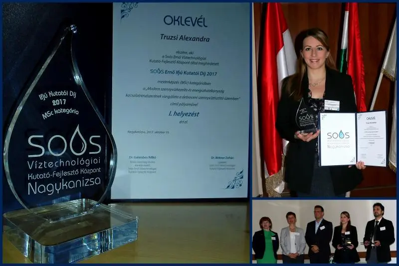 Örömmel tudatjuk, hogy Truzsi Alexandra PhD hallgató, környezetvédelmi tanácsadó Környezetmérnöki Mesterszakos Diplomatervével elnyerte a Soós Ernő Víztechnológiai Kutató-fejlesztő Központ által meghirdetett idei évi Soós Ernő Ifjú Kutatói Díjat, melyet Nagykanizsán vett át!